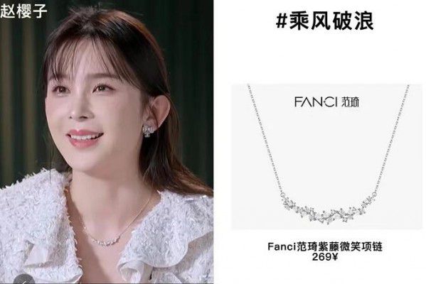 赵樱子佩戴的这款微笑天使项链是Fanci销量较高的单品之一,虽然设计简单却又不失精致,这款项链和碎花裙、单色外套特别搭配。最重要的一点,这款项链价格真的太实在了!不到300元就可以拥有赵樱子姐姐的同款项链,姐妹们还在忧郁什么呢?喜欢的可以下手了!
